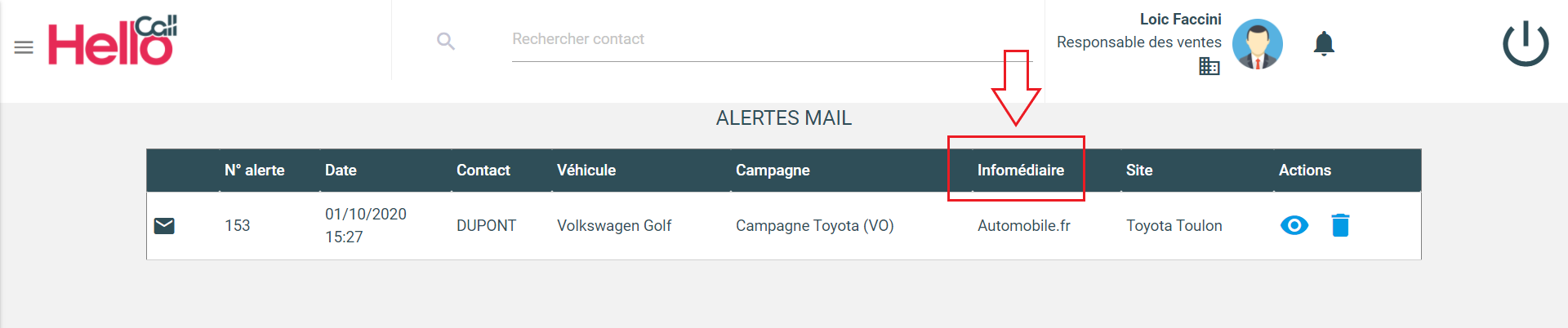 - Correctif : affectation sur un ancien infomediaire sur la cloture d'une appel
